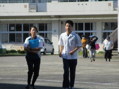 1年生で数学と理科、英語の研究授業が行われました。数学では、文章問題に書かれていることを読み取って、文字式の等式をつくる内容でした。周囲と話し合ったり個人で解いたりして、最後にはAIドリルで演習を行っていました。理科では、身近なものを使って発生した気体を確かめる実験をしました。班で話し合って実験内容や実験器具を決め、発生する気体を予想して実験をしていました。英語では、自己紹介から身近なものをALTに伝える授業をしました。タブレットで調べたり友人や先生に聞いたりして会話文を作成していました。ALTのハドソン先生は来学期は他の学校に派遣されます。これまで本当にお世話になりました。