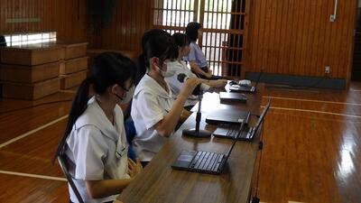 リモート形式で全校学活を行いました。初めに、全国学力学習状況調査の国語の問題を解いて、自分の考えを自分の言葉で述べること、実力テストの会話形式の問題から話合い活動で相手の意見を聞いて自分の意見を述べること、それらを経験していく授業が求められていることについて話がありました。その後、話合いで深い学びにつながる反応の仕方の説明を受け、実際に活動をしました。4つのAIロボットで自分が必要だと思うものを決めて理由を書き、話合いをして意見が変わったり理由が多くなったりしたことから深い学びに少し近づいたことを実感しているようでした。日頃の授業に繋げていきたいですね。