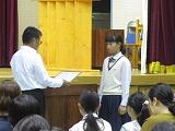25日(金)に志和池地区青少年健全育成大会が行われました。善行児童生徒の部で田中瑠衣さん(3年)、標語・ポスターの部で新納愛梨さん(1年)が表彰されました。おめでとうございます。また、子どもの意見発表では、今村瑞穂さん(3年)が東日本大震災から建築士になりたいという想いを発表しました。
