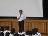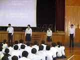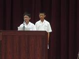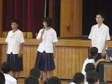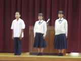 25日(金)に志和池地区青少年健全育成大会が行われました。善行児童生徒の部で田中瑠衣さん(3年)、標語・ポスターの部で新納愛梨さん(1年)が表彰されました。おめでとうございます。また、子どもの意見発表では、今村瑞穂さん(3年)が東日本大震災から建築士になりたいという想いを発表しました。