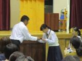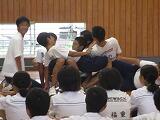 9月26日(木)、2・3年生を対象に青年劇場の方々による鑑賞教室ワークショップが行われました。5校時は2・3年生全員が参加し、劇団員の方々と身体を使ったレクリエーションをしたり、四季を言葉なしにジェスチャーで伝えたりしました。6校時は2・3年生の代表者に劇の演じ方を実際に伝授していただきました。本校は10月13日(日)に文化祭が行われます。学んだことを劇で生かせたらいいですね!