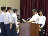 25日(金)に旧生徒会役員に感謝状を、新しい生徒会執行部並びに専門委員長・副委員長に任命証が渡され、正式に新生徒会がスタートしました。これまで学校を引っ張ってくれた3年生の生徒会役員の皆さん、本当にお疲れ様でした。ありがとうございました。新生徒会役員の皆さん、3年生に負けないよう志和池中の伝統を引き継ぎ、さらによりよい志和池中を築き上げて下さい。