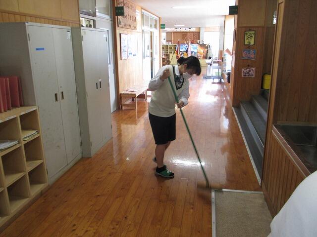 志和池中学校では、無言清掃と清掃後の反省会の徹底を励行しています。生徒は予冷が鳴ると、清掃場所に急いで移動し、清掃のチャイムが鳴るまで、黙想をして待ちます。清掃が始まると一斉に清掃を開始し、部屋のすみずみまできれいにみがきあげてくれます。清掃後は班長を中心に反省会を行い、担当の先生の指導を受けます。生徒たちの熱心な清掃のおかげで、きれいな校舎で学校生活を送ることができます。先輩たちが伝えてきた素晴らしい習慣を、これからも後輩たちに伝え続けて欲しいです。