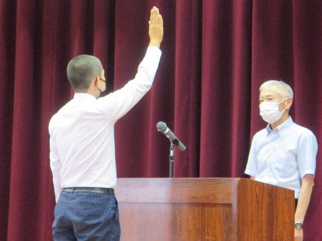 10月31日(月)生徒会役員の退任式と認証式がありました。旧役員と新役員がステージ上で紹介され、旧生徒会長から最後の話が、そして新生徒会長からは最初の話が生徒全員に語られました。旧生徒会長から全校生徒へ「僕たちは、みなさんの期待に応えることができたでしょうか?」という言葉に、生徒たちは「ありがとう」の言葉のかわりに体育館全体に響き渡る大きな拍手で答えてくれました。新生徒会長も「旧生徒会役員のみなさんが創りあげてきた”志和池ブランド”を更に素晴らしいものにしていきます」と思いをつなぐことを決意表明してくれました。