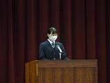 生徒代表の言葉は、1年生 前廣玲奈(まえひろ れいな)さん、2年生 巣立千幸(すだて ちゆき)さん、3年生 内村歩優(うちむら あみゆ)さんが 2学期の抱負を述べていました。