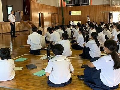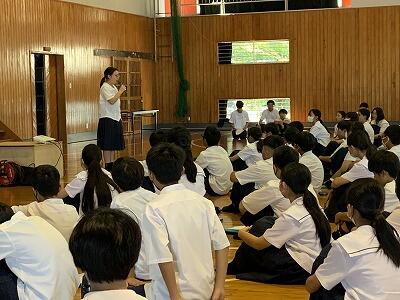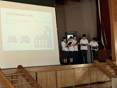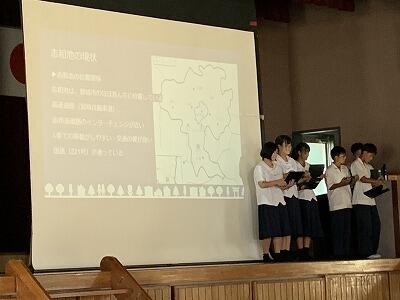 1年生が、総合的な学習の時間に1学期から取り組んできた地域調査の発表をしました。司会や発表後の評価についての説明など、代表委員の生徒がすべて行い、生徒が主役となる発表会でした。多くの保護者が参観してくださり、評価をQRコードを使って送信していました。最後に校長先生から、良かったところや、今求められている力であるので伸ばしていくように話がありました。今後も発表の機会が多くあると思います。更に成長するのが楽しみですね。