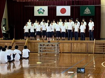 合唱コンクールのリハーサルを、学年ごとに行いました。学年全員で課題曲を歌った後、学級ごとにステージで歌いました。日頃からよく練習しているためか、合唱だけでなく、入退場や聴く態度も素晴らしかったです。学級の発表が終わった後に、合唱実行委員が感想や改善するとよい所を発表していました。1週間後の本番が楽しみですね。