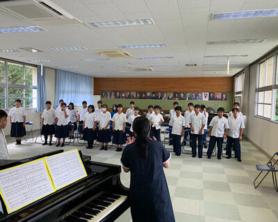 今週金曜日(11日)に行われる合唱コンクールに向けて、昼休み様々な場所で練習する姿が見られました。渡り廊下やベランダ、体育館前などの広い場所で声を遠くに飛ばしたり、響きやすい場所でハーモニーを確認したりしていました。本番まであと数日ですが、よい合唱ができるといいですね。11日までオープンスクールとなっています。保護者も地域の方々も、授業や練習で頑張る姿をぜひご覧になられてください。