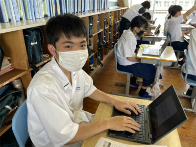 今朝の1年生の朝自習は、PCタブレットを使ってみました。