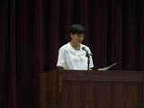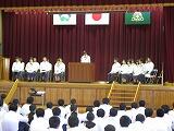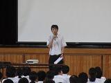 2学期の始業式が行われました。生徒代表の言葉では、1年生代表 杉山 心乃海(すぎやま このか)さん、2年生代表 内村 歩優(うちむら あみゆ)さん、3年生代表 矢野 慎大(やの まお)くんが、2学期の抱負を堂々と述べていました。校長先生の話では、「2学期は体育大会や文化祭、地区大会と大きな行事がありますが、こつこつと勉強することを忘れないで下さい。」という話がありました。最後に生徒指導主事の桒畑先生から、夏休みの振り返りとSNSやオンラインゲームについての話がありました。2学期は1年間で一番長い学期になりますが、充実した学期になるように頑張りましょう!