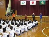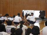 9月26日(木)、2・3年生を対象に青年劇場の方々による鑑賞教室ワークショップが行われました。5校時は2・3年生全員が参加し、劇団員の方々と身体を使ったレクリエーションをしたり、四季を言葉なしにジェスチャーで伝えたりしました。6校時は2・3年生の代表者に劇の演じ方を実際に伝授していただきました。本校は10月13日(日)に文化祭が行われます。学んだことを劇で生かせたらいいですね!
