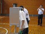 今日の6校時は避難訓練がありました。地震を想定した訓練で、当初はグラウンドの予定でしたが、雨のため体育館に避難しました。校長先生の話の後、防災に対する映像を視聴しました。最後に、防災担当の村尻先生が出題されたイエスノー形式の防災クイズを全校生徒で考えました。楽しみながらも真剣な避難訓練となりました。1学期は授業中に地震があり、机の下に身を隠すこともありました。日頃から防災意識をもって生活したいですね!