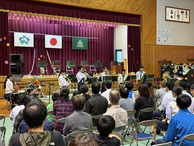 吹奏楽部の定期演奏会が、本校体育館で行われました。1部では吹奏楽コンクールで演奏した2曲を披露しました。2部ではパート紹介をし、楽器の特徴が分かりやすい馴染みのある曲を各パート演奏しました。3部はノリの良い楽しい曲をたくさん演奏しました。特に、親子でのデュエットがあったり、先生や3年男子生徒による飛び入り参加もあったりして、会場が一体となって大変盛り上がりました。都北吹奏楽祭と志和池地区文化祭での演奏も楽しみです。