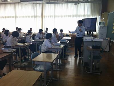 南部教育事務所と都城市教育委員会の方々による学校支援訪問がありました。生徒たちは、登校時や廊下ですれ違う先生方に、よく挨拶をしていました。また、授業もタブレットを使って自分の意見を書いたり、ペアや席を移動して学び合ったりする姿が見られました。特に、1年生の学活では、自らの夢地図を、FigJamのシートに記入し、級友のシートや発表を参考にして再考する姿が見られました。また、2年生の英語では、こまめにペアで英会話を行い、最後にはタブレットで会話を録画していました。午後の研究会では、授業を見て気付いたことや互いの実践を報告し、さらに委員会の方々による助言もいただきました。今後の授業改善につなげていきます。