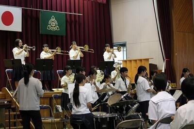 学習発表会が11日に行われました。英語暗唱弁論の発表は、とても流暢に身振り手振りを付けて発表していました。合唱コンクールは、どの学級も3つのパートがつられることなくハーモニーが響いていました。特に3年生は2学級とも圧巻の出来で、聴衆を感動させていました。総合的な学習の時間の発表は、3学年とも1学期から取り組んできた内容をスライドだけでなく、ニュース形式やクイズ、動画などを取り入れて分かりやすく発表していました。吹奏楽部の演奏は特別ゲストも入り、会場を盛り上げていました。10月26日の定期演奏会も楽しみですね。