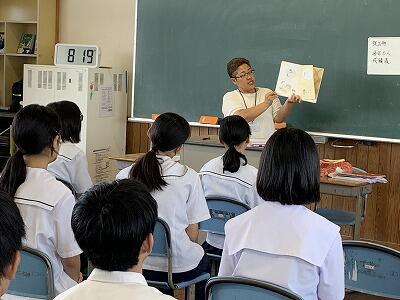 16日(火)に、今年度3回目の読み聞かせがありました。読み聞かせボランティア「志和っ池」から6名来校されて、1・2年の5クラスで様々な絵本の読み聞かせをしていただきました。生徒たちは3連休明けでしたが、読み聞かせを聴いて元気をもらったようでした。ボランティアの皆様、2学期もよろしくお願いします。