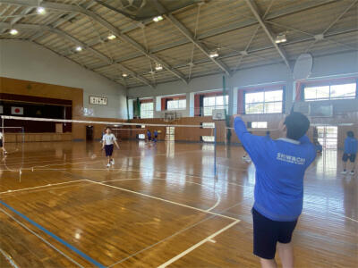 体育館ではバドミントンを。