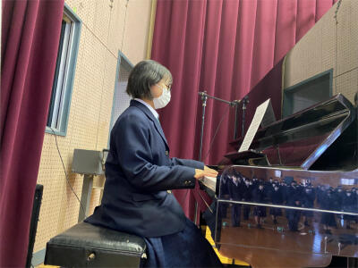 3学期から校歌のピアノ伴奏をしてくれる、2年生の増田悠衣さんです。