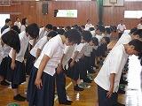 今日の6校時終了後に生徒会集会が行われました。前半は「命の大切さを考える日」の取組で、命に関する読み物を黙想しながら聞きました。後半は生徒会の各委員会から4月からの活動反省と、7月の取組に対する具体策が発表されました。1学期終了まで残り1ヶ月を切りました。暑さに負けず乗り切りましょう!