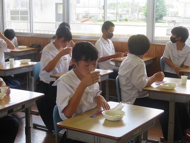 7月7日(木)1年生が4月に摘んだお茶の試飲を行いました。初めて経験する自分たちで摘んだお茶を飲むということに、生徒たちも「どんな味だろう」と興味深々の様子でした。お茶を口にした生徒からは「熱い」「苦い」「香りがいい」「おいしい」という声があがりました。