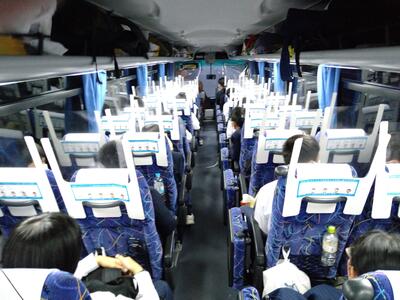 部屋に戻って荷物を持ったらバスに乗り込んでいきます。