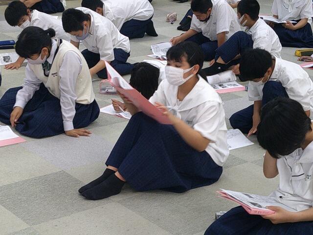 6月16日(木)6校時、講師に元校長先生で志和池在住の堀之内さんを招いて志和池の歴史について勉強しました。自分たちが住む町の歴史について初めて聞く話に生徒が大きくうなずく姿も見られました。