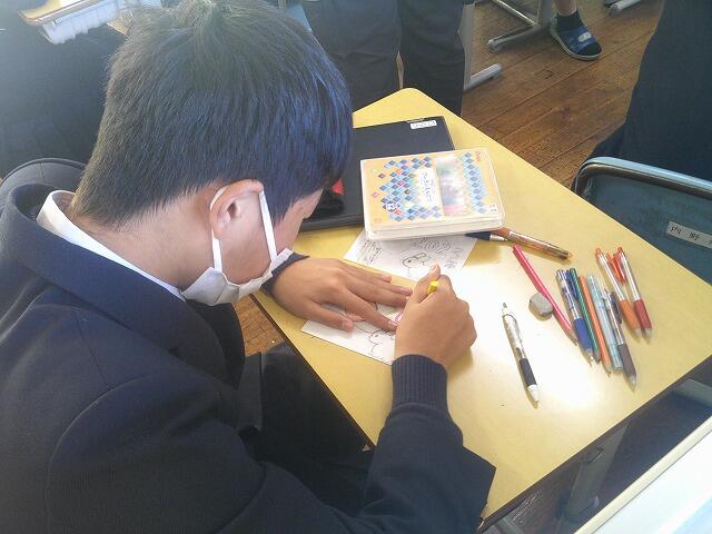 本年度からの志和池中学校での取組の一つに、志和池地区の高齢者のお宅に届ける年賀状の作成が加わりました。1、2年生全員で、総合の時間を使い、心のこもった年賀状を作成しました。令和5年の元旦には、みんなで書いた年賀状が、生徒たちの優しい気持ちと一緒にご家庭に届く予定です。