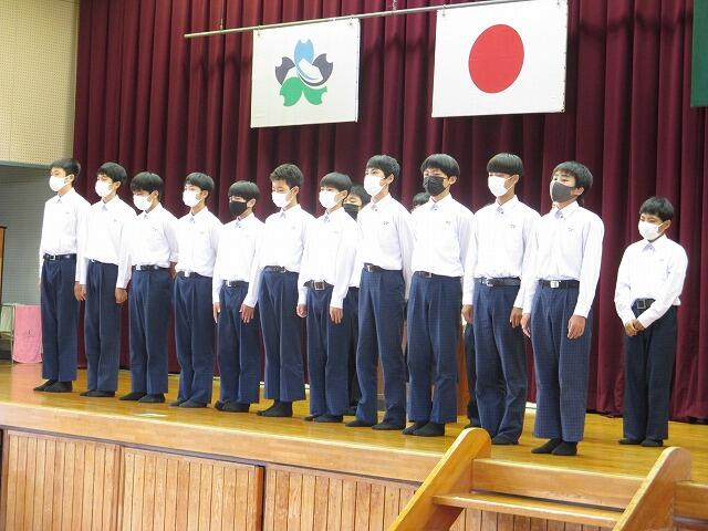 5月30日、6月4日から行われる都北地区総合体育大会の選手壮行会がありました。1年生にとっては初めての、3年生にとっては最後の大会になります。この日のために一生懸命練習に励んできた選手たちには悔いのない大会になって欲しいです。選手を代表して野球部主将が「コロナ禍の中、大会が開かれることに感謝し、精一杯プレーすることを誓います!」と力強く選手宣誓を行いました。3年生は入学してから毎年、制限された中での大会でしたが、そんな中でも負けずに3年間続けてきました。最後の夏が最高の夏になるように力いっぱい頑張ってください!