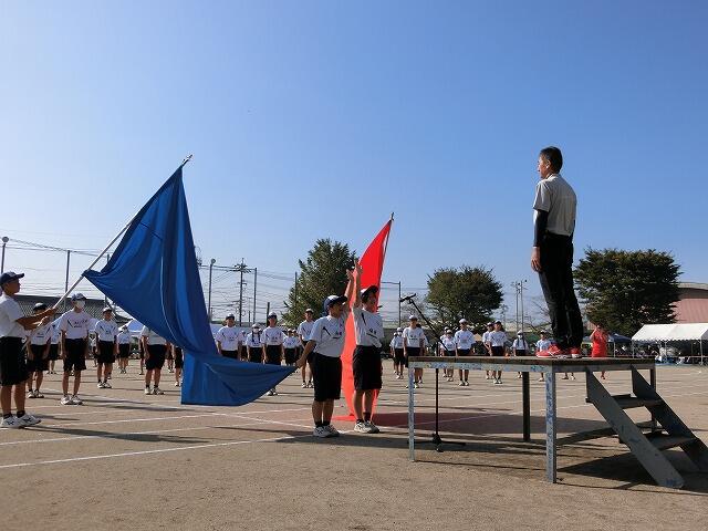 競技が開始され、両団のせめぎあいが続きます。応援する団員の皆さんも昨年と違って、マスクなしで、大きな声援を送っています。団技やリレーで赤団が小優勝旗の数を少しずつ増やしていきます。2年生の団技「だいじゃをとるのはだいじゃ~!」では、場所とりが大事なようで、1対1で迎えた3本目、場所決めのじゃんけんに勝った赤団のリーダーが大きくガッツポーズをしました。絶体絶命の青団でしたが、最後の団対抗リレーで追いすがる赤団を見事振り切り、小優勝旗を手にしました。結果、総合優勝は赤団、応援賞も、わずか5点差で赤団が手にしました。W優勝を果たした赤団は勿論笑顔でしたが、敗れた青団の団員も、最後までやりきった充実感で満足した表情が印象的でした。素晴らしい体育大会を本当にありがとう!