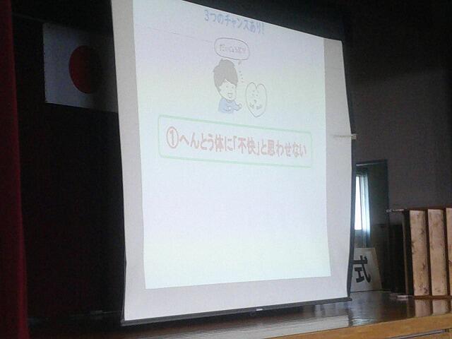 6月18日(日)1時間目の授業参観の後、都城市教育委員会から宮内英里子先生を講師に招いて学校保健委員会を行いまいました。全校生徒と保護者も約60名が参加して、先生の話に耳を傾けました。講話の内容は”ストレスの原因と、対処の仕方”というもので、科学的にストレスの原因を分かりやすく説明して頂き、どのようにすれば、心の負担が軽くなるかということをスライドを見ながら、丁寧に解説してもらいました。先生の話一つひとつに生徒や保護者、また志和池中職員も大きくうなずきながらあっという間の1時間を過ごしました。今日学んだことを明日からの自分たちの生活に生かしていきたいです。