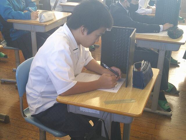 12月13日(水)1年生の教室で、学活の研究授業を行いました。テーマは「充実した家庭学習を行うには、どうすればよいか」先生がクラスの現状について説明し、生徒のみなさんは自分の家庭学習の様子を振り返り、クラスの友人たちの宅習ノートを見せてもらいながら、それぞれ自分の学習の改善点に気付いたようでした。最後は、学力をあげる作戦を班で考え、決定したのが「enjoy!homework!」楽しみながら学力をあげようという作戦でした。今日から全員が楽しみながら家庭学習に取り組んでくれるように願っています!