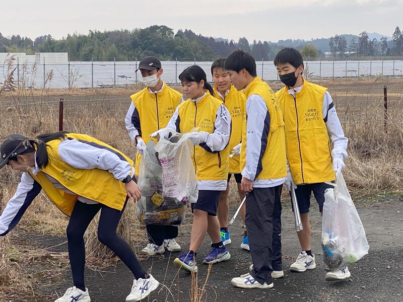 2月3日(土)昨年も行われた南九州駅伝前日清掃ボランティアが行われました。当日はあいにく小雨が降る中の活動でしたが、1,2年生の約60人参加した本校の生徒たちは約1時間、国道221号線の道路わきに転がっているゴミを拾いました。普通に登校している時には気づかなかったゴミが思ったより多く道端に落ちていて、開始から約10分で公民館でもらったゴミ袋が早くも一杯になっている生徒も見られました。生徒たちがきれいにした道路を、明日の昼頃、駅伝の選手たちが優勝目指して走る姿が見られるのが、とても楽しみです。