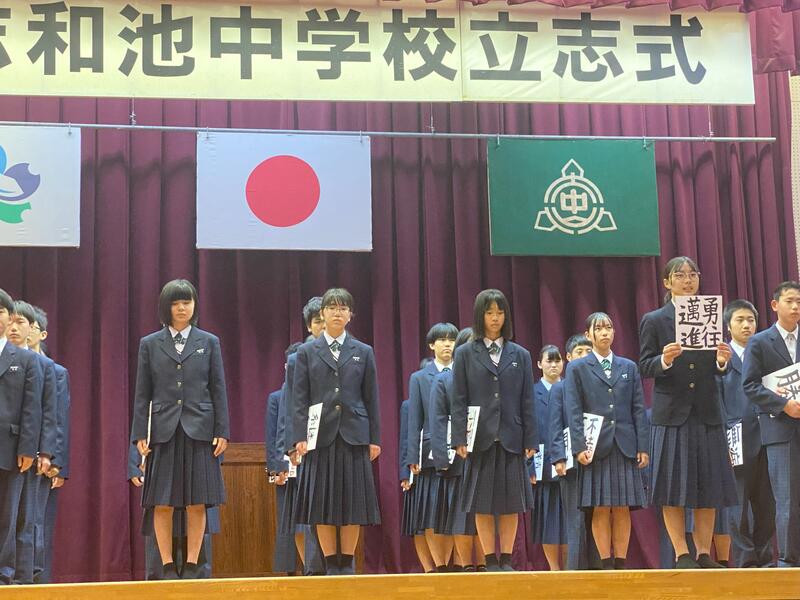 2月2日(金)2年生が本校体育館で立志式を行いました。今日のために考えた立志の誓いを一人一人が保護者の前で力強く発表してくれました。発表の後には、山田中の松下教頭先生による講演会もあり、生徒の皆さんも真剣な表情で先生の話に耳を傾けていました。あと一月足らずで3年生が卒業します。その後は2年生が学校の中心となって新しい志和池中を創っていかなければなりません。今日の誓いを忘れずに、明日からも頑張ってください。
