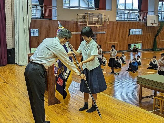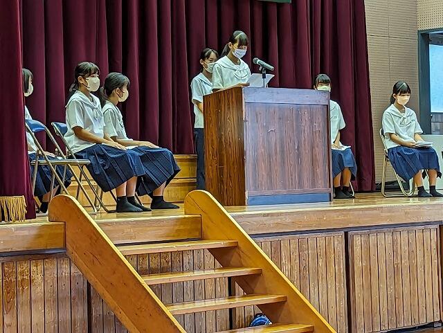 10月13日(金)先日行われた秋季都北地区大会や地区の陸上大会、薬物乱用防止ポスター入賞などの表彰式と、県秋季中体連県大会の選手壮行式が行われました。地区大会優勝を果たした女子バレーボールをはじめ、陸上、そして24日に三股町で行われる地区駅伝大会に出場する選手が、それぞれの思いを生徒の前で発表してくれました。選手を代表して女子バレーボール部主将の瀬戸口さんが力強く選手宣誓を行い、選手の士気を高めてくれました。今月末から開始される県大会での志和池中生の活躍を期待します!