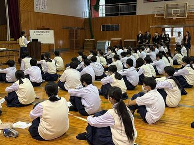 2年生の修学旅行が始まりました。朝5:40に地区公民館に集合し、健康観察をした後、出発式をしました。実行委員長が「持っていくのはマナーと思いやり、持って帰るのは最高の思い出になるようにしましょう」とあいさつで述べていました。たくさんの保護者と先生方が見送るなか、バスは出発しました。平和学習に日本の古都に多くのことを目で見て、肌で感じて、無事に帰ってきてくれるといいです。保護者の皆様、寒い中の見送り、ありがとうございました。