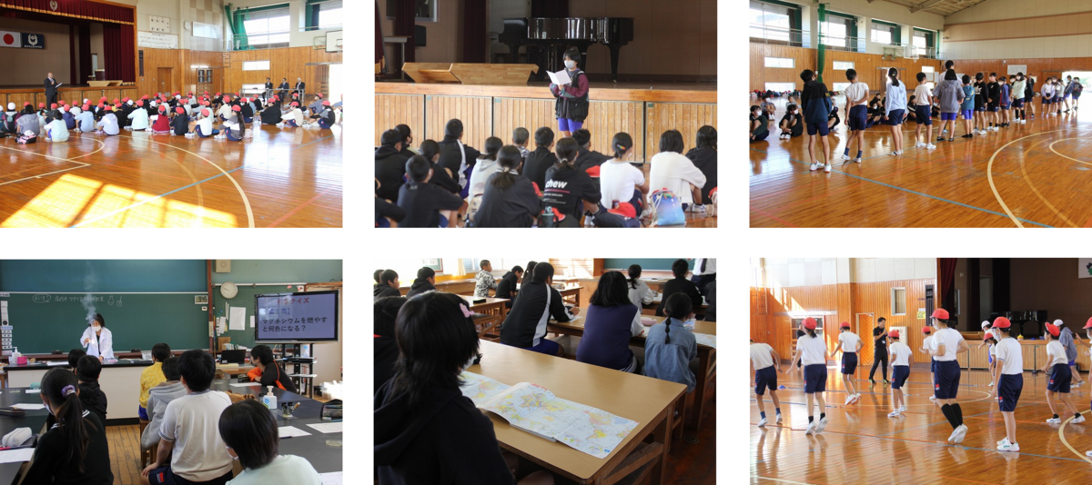 今回の模擬授業は、理科(庄内中ワクワク理科教室)、社会(地図帳の使い方を覚えよう)、体育(リズムに乗って体を動かそう)の3教科。ローテーションしながら3つの授業を体験しました。