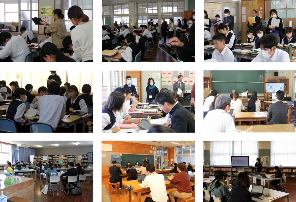 11月22日(水)、庄内地区小中一貫教育合同授業研究会を本校で開催しました。参観授業は、国語、数学、英語でした。国語は1年生で故事成語の授業、数学も1年生で作図の授業、英語は3年生でオールイングリッシュでプレゼンテーションを行う授業でした。生徒は、授業の中でICTを活用しながら学習を進めていますが、授業後の研究会では先生方もタブレットを使って意見交換やICT活用の事例報告をなどが行われました。