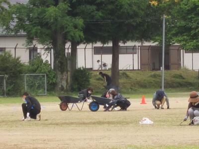 5月15日(日)に、第1回PTA親子奉仕作業を行いました。金曜日までは大雨で、実施できるか心配されましたが、土曜日から天気が回復し、当日は程よい作業日和となりました。たくさんの保護者と生徒、先生方の協力で運動場の除草が進み、体育大会が気持ちよく行えそうです。ご協力、ありがとうございました。