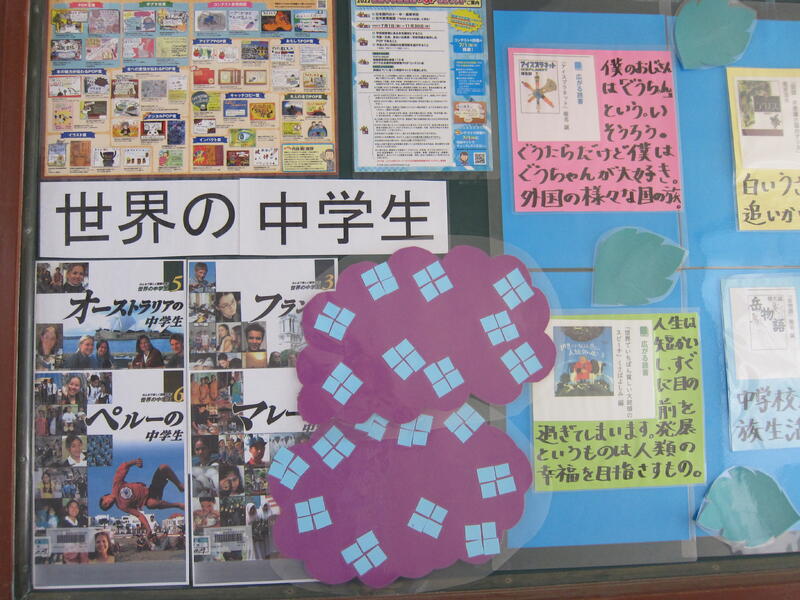 今年度は、図書館サポーターが、週2日、来校し、図書館の整備やおすすめ本の紹介をしてくださいっています。掲示も工夫され、生徒たちの興味・関心が高められています。