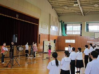 6月17日(金)は、BLACK BOTTOM BRASS BANDの皆さんが演奏するジャズを楽しみました。午前中は期末テストで緊張していましたが、午後は、体全体でスイングを感じ、心もほっこりできました。