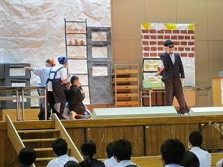 10月9日(日)は、文化発表会を行いました。ステージの部では、まず、英語暗唱の発表から始まりました。次に、1年生の劇「クロワッサン」、2年生の劇「街角の碑」、3年生の劇「ふるさと」、最後に吹奏楽部のリズミカルで楽しい演奏が披露されました。また、展示の部では、書写(1年「日光」、2年「若緑」、3年「感謝」)、美術(ゴム判子、色紙フレーム、プッシュカラー日本画)、理科の自由研究の作品が発表されました。ステージ発表を鑑賞している生徒の態度も素晴らしく、体育館に大きな拍手が鳴り響くとともに、一体感が生まれました。