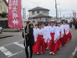 11月23日(水)に、都城島津邸から神柱神社まで、島津家歴代当主や武士などにに扮して練り歩く「明道館パレード」がありました。庄内中からも3年女子が諏訪大明神の巫女として、3年男子が都城六烈士として参加しました。庄内地区には安永城址や山久院跡など都城島津家とゆかりの深い史跡が多く、毎年、1年次に「地域巡見」として学習会を開いています。この経験は、ふるさとを大切に思う貴重な時間になったのではないかと思います。