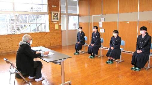 3年生は高校受験が始まりました。学力試験に加えて面接試験も行われるために、学級で学級担任の先生や友達同士で面接練習を行ってきました。1月13日(金)から「まちづくり協議会」の方々に面接官をお願いして、実践練習を始めました。緊張感もさらに高まった中で、自己アピールできる力をつけているところです。必ず、合格を勝ち取ってほしいと思います。