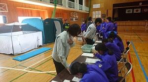 ◎私は今日のこの体験を通して、災害時には周りの人と協力するということを忘れないようにしたいです。協力することで、多くの人が助かるの思うので、今日の体験はとても大切なことであると思いました。実際に災害が起きたとしても、焦らずに自分を守る行動もしたいです。[3年]
