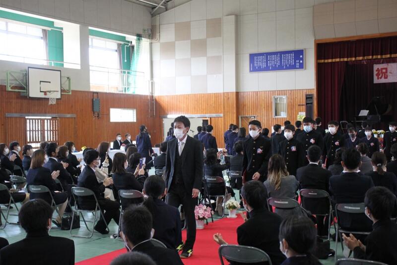 校長先生からは、これからの激動の時代を精一杯生きてほしいとお話がありました。送辞では、生徒会代表の安藤君が立派に3年生を送り出す言葉を、答辞では、卒業生代表の福田さんが、涙を流しながら感動的な言葉で先輩として後輩に託す思いを、それぞれ述べてくれました。在校生も真摯な態度で式に参加してくれました。数多くの祝電・祝詞も、こころから感謝申し上げます。