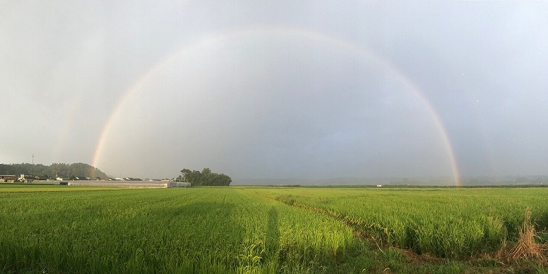 9月21日(木)の朝、庄内地区にとても美しい虹が架かりました。見逃したみなさんにご紹介。何か幸運が近づいているのかもしれませんね。