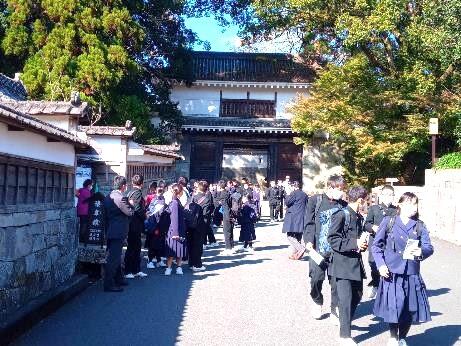 2年生は12月1日(水)から3日(金)まで、修学旅行に行ってきました。まず、第1日目は陸上自衛隊鹿屋航空基地資料館見学、飫肥城資料館・下町散策、青島神社参拝を行い、シェラトングランデ・オーシャンリゾートホテルに宿泊しました。第2日目は天岩戸神社参拝・天安河原散策、草千里浜散策・阿蘇火山博物館・阿蘇震災ミュージアム見学を行い、グリーンピア南阿蘇ホテルに宿泊しました。そして、最終日はグリーンランド。いろいろな乗物に友達と一緒に乗ったり、買い物を楽しんだりしました。中学時代の良い思い出ができました。