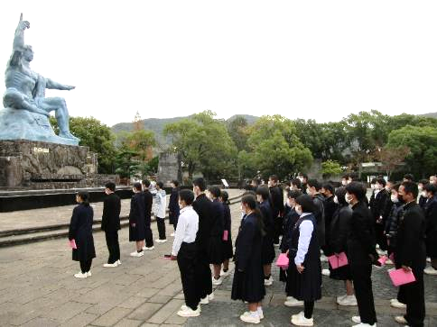 2年生は、12月4日(日)~6日(火)に修学旅行に行ってきました。はじめに熊本城見学をし、その後、長崎県のハウステンボス、長崎原爆資料館、長崎市内自主研修、島原市の普賢岳「がまだすドーム」を見学しました。最終日はグリーランドで級友と楽しい時間を過ごしました。旅行を通して、2年生が大きく成長してくれたことを大変うれしく思います。
