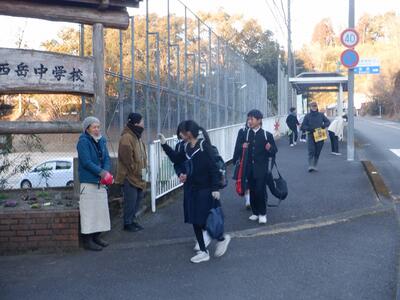 生徒の交通安全の見守りや、生徒と保護者が元気なあいさつを交わし、学校生活を笑顔でスタートできることを目的に本年度3回目のPTA交通安全朝の立ち番指導を2日間行いました。 2日目は、気温マイナス6度の極寒の中でしたが、生徒と保護者が笑顔であいさつを交わすことができました。参加してくださった保護者の皆様、本当にありがとうございました。