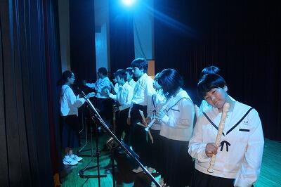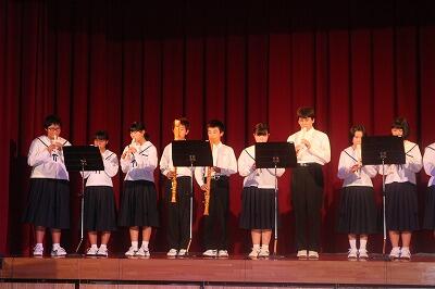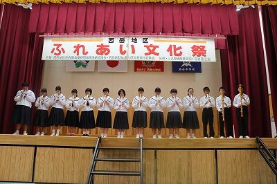 小中学校体育館ではリコーダー演奏、合唱、やっこ踊りを披露しました。